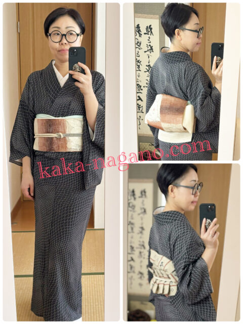 帯結びは、違う名古屋帯で銀座結びも練習しました。
