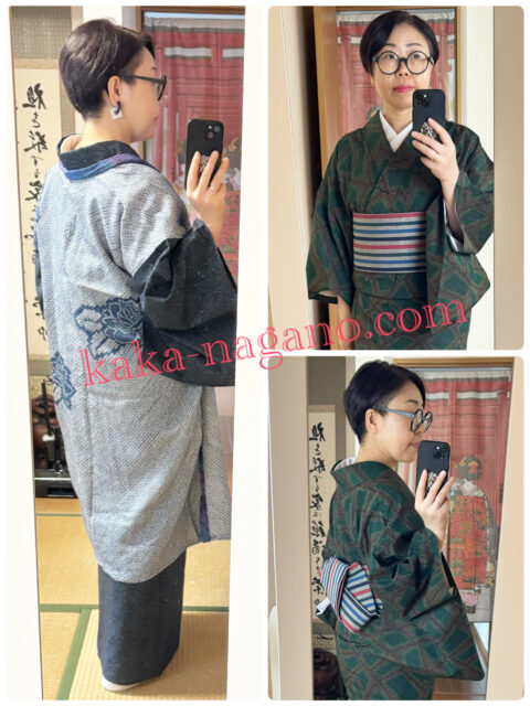 近々、お着物を着る機会があるということで、その時に着る予定の着物と帯で練習です。