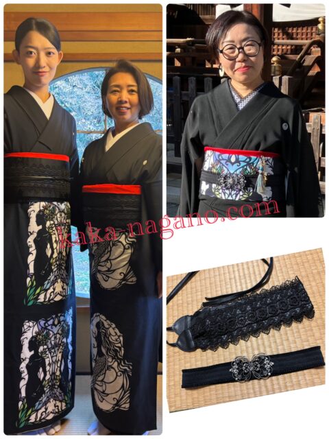 上前に、切り絵作家MIHOさんの切り絵(布)をまとわせて着付け