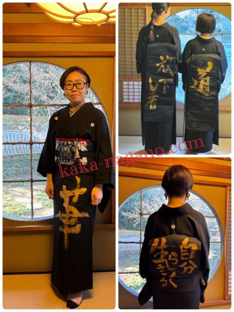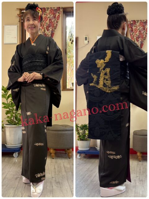 帯は、華華が書いた 「道」 「放下着」の帯をだらり風に