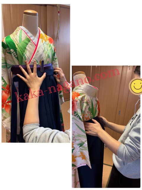 お袖の短い2尺袖・振袖と着付け方もいろいろお稽古です。