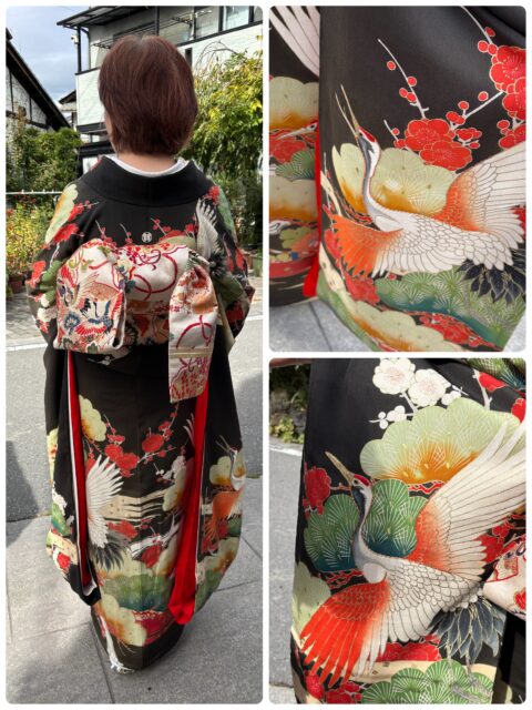お袖に鶴が左右にあって、よく見ると 阿吽