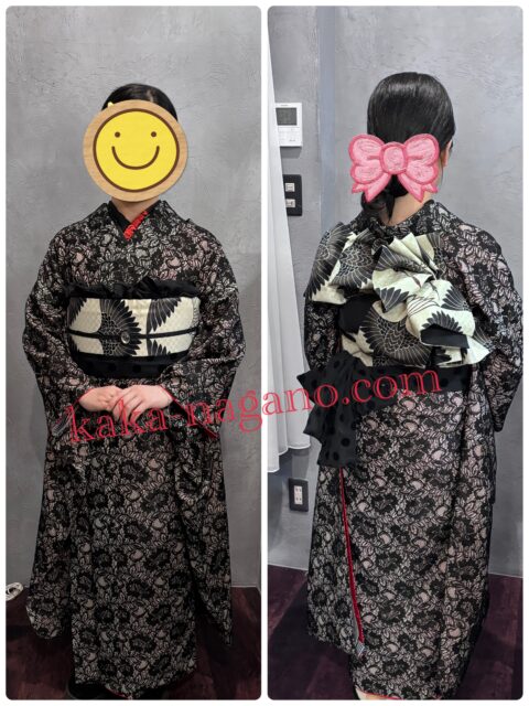 ご希望を伺いながら楽しく着付けさせていただきました。