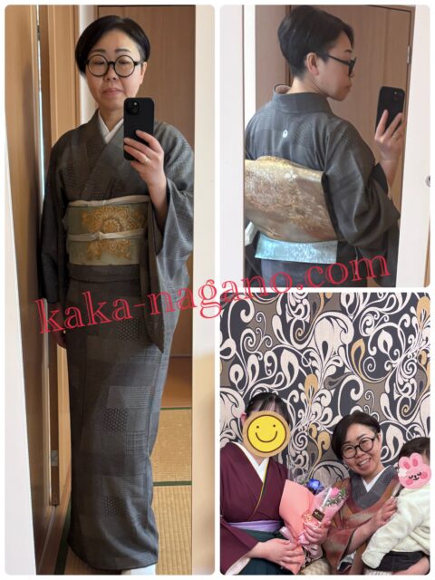 早朝の出張着付けの後、娘の着付けをして送り出し