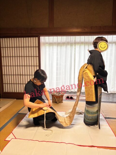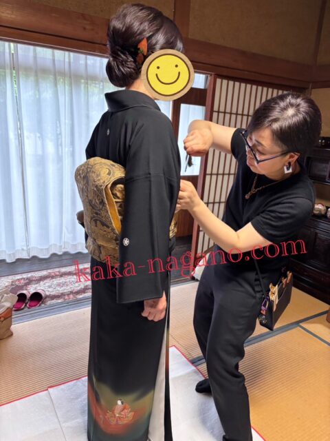 会場までの移動距離もあったので、気をつけながら着付けさせていただきました。