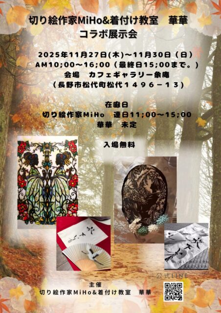 切り絵と着付けコラボと、書も少し展示していただく予定です。