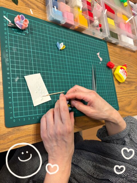 つまみ細工にも興味を持ってくださり体験してくださいました。