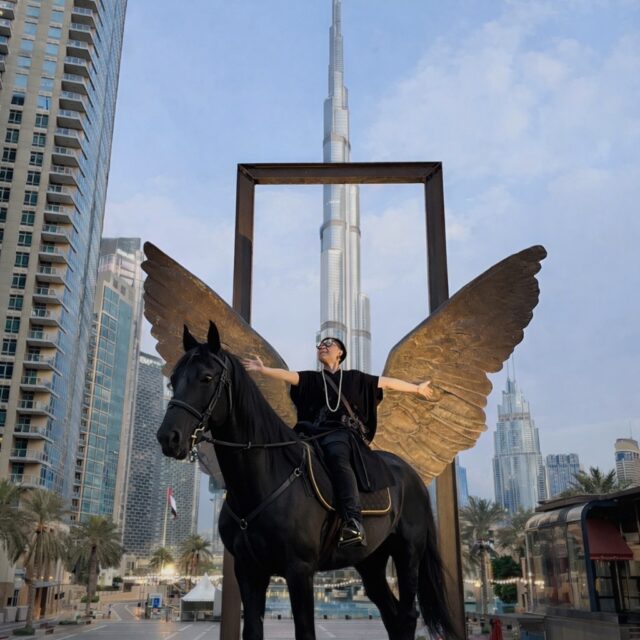 ドバイのブルジュ・パーク前で撮影した写真を